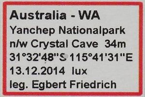 Common (1954: 94, 95-96): “Holotype male: Black Mountain, Canberra, A.C.T., 31.x.1952, I. F. B. Common (light trap); allotype female: Black Mountain, A.C.T., 3.xi.1952, I. F. B. Common (light trap); paratypes: a series of 19 specimens of both sexes from the same locality.” — “The holotype male and allotype female, together with 11 paratypes, are in the Division of Entomology Museum, C.S.I.R.O., Canberra. Two paratypes, a male and a female, have been deposited in each of the following museums: the British Museum (Natural History), the Australian Museum, Sydney, the South Australian Museum, Adelaide, and the National Museum of Victoria, Melbourne.”