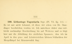 - Erstbeschreibung: Christoph, H. (1885): Lepidoptera aus dem Achal-Tekke-Gebirge. Zweiter Theil. — Mémoires sur les lépidoptères 2: 119-171, pl. VI-VIII + XV. St.-Pétersbourg (M. Stassuléwitch).