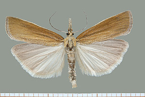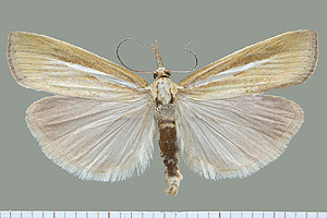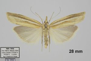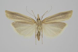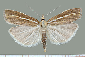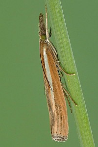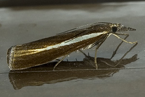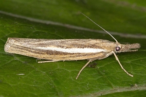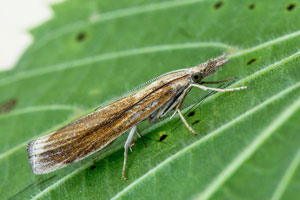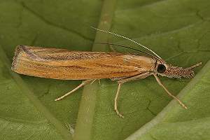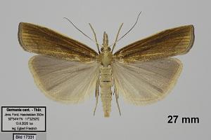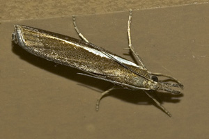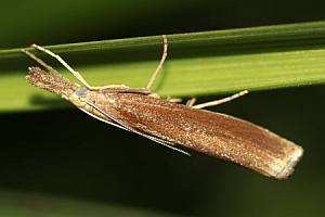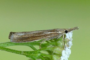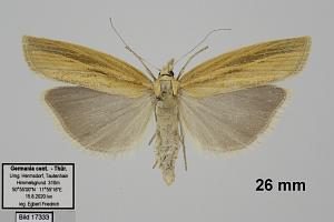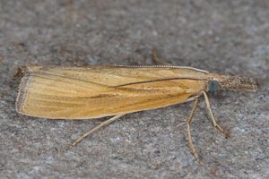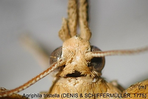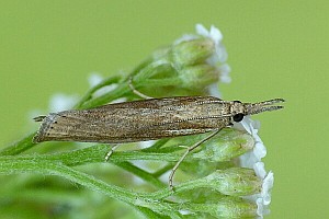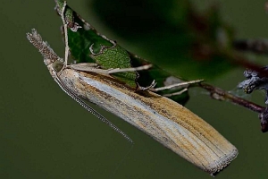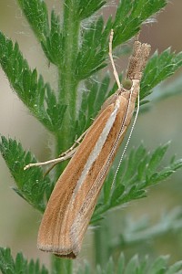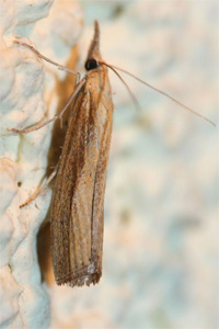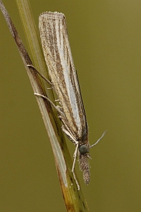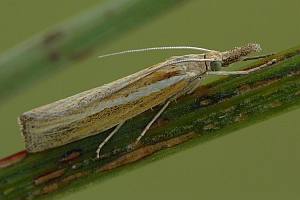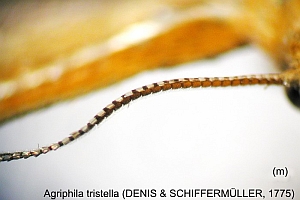 Die Fühler von Agriphila tristella sind perlweiß. Die ähnliche Art Pediasia luteella hat bräunlich-gelbe bis schmutzig-weiße Fühler. [Oliver Rist im Forum]