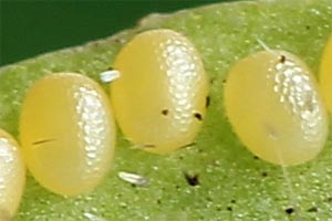 5-7: Deutschland, Saarland, Saarbrücken, Garten (baum- und buschreiche Umgebung - Wohngebiet am Stadtrand), 248 m, auf Senf (wahrscheinlich Sinapis arvensis, Acker-Senf), Raupe leg. 28. August 2014, Fotos 1. Oktober 2014 (leg., cult. & fot.: Silke Balzert), det. nach Falterschlupf (ursprünglich im Forum fehlbestimmt als X. designata)Forum