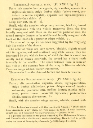 - Erstbeschreibung: Zeller, P. C. (1867): Crambina, Pterophorina and Alucitina, collected in Palestine, by the Rev. O. P. Cambridge, March to May, 1865; determined, and the New Species described, by Professor Zeller; the German Descriptions translated into English by H. T. Stainton, F.L.S. — The Transactions of the Entomological Society of London. Third Series 5 (6): 453-460, pl. XXIII-XXIV.