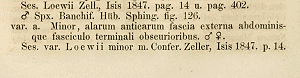 - Erstbeschreibung: Staudinger, O. (1856): Beitrag zur Feststellung der bisher bekannten Sesien-Arten Europa's und des angrenzenden Asien's. — Entomologische Zeitung 17: (5-6) 145-176, (7-8) 193-224, (9-10) 257-288, (11-12) 323-338. Stettin.