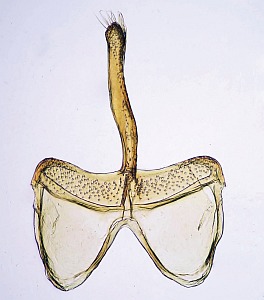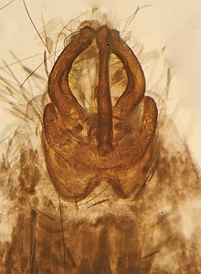 1-3: (1: Valvenkomplex), (2: VIII. Sternit), (3: des unter Diagnosefoto 1 gezeigten ♂), Kroatien, Podgora, 1270 m, leg. Raupe an Astragalus sp. 26. April 2017, e.p. 27. Mai 2017 (leg., cult., det. durch GU & Fotos Robert Heckford)