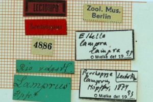 1-3: Lectotypus ♂, Daten siehe Etiketten (fot.: Ernst Brockmann, Fotos bearbeitet: Michel Kettner), coll. Zoologisches Museum der Humboldt-Universität zu Berlin.