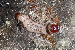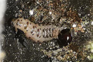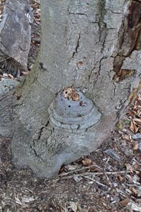1: Österreich, Kärnten, Lesachtal, Birnbaum (Flurname!), 700 m, Fraßbild der Raupen mit Kotauswurf in Zunderschwämmen (Fomes fomentarius) (Freilandaufnahme: Helmut Deutsch), det. Helmut Deutsch