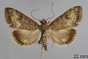 Anmerkung: Die hier bis zum 02. Februar 2015 gezeigten Bilder von zwei gespannten Faltern aus Kroatien erwiesen sich im Nachhinein als Evergestis infirmalis und wurden dorthin verschoben.