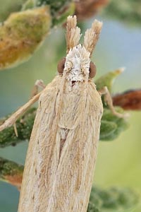 Die Raupe wurde u.a. an Mais (Zea mays) und Zuckerrohr (Saccharum officinarum) gefunden. Sie lebt aber sicher noch an weiteren Gräsern. Bidzilya et al. (2020) schreiben: "The species is known as a pest on Saccharum officinarum and Zea mays, but occurs also on Erianthus munja and Saccharum spontaneum (Arora 2000: 93)."
