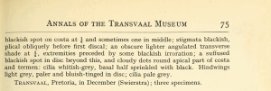 - Erstbeschreibung: Meyrick, E. (1918): Descriptions of South African Micro-Lepidoptera. — Annals of the Transvaal Museum 6 (2): 7-47