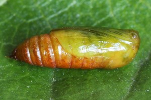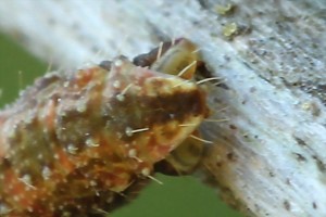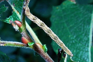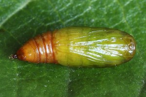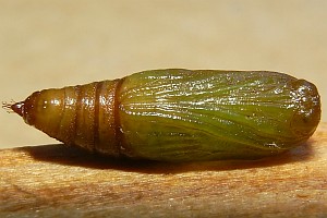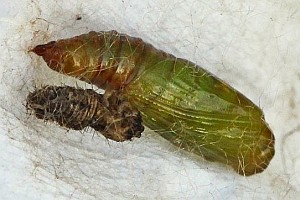 1: Deutschland, Bayern, Bayerischer Wald, Furth im Wald, eigener Garten, Raupenfund am 19. August 2007 an Gartenhimbeere, verpuppt am 29. August 2007 (Studiofoto: Ingrid Altmann), cult. & det. Ingrid AltmannForum