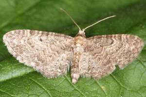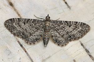 Bei Eupithecia subfuscata liegt die weißliche, T-förmige Aufhellung auf Tergit 1 und nicht auf dem Thorax.