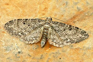 1-2: So ähnlich diese drei Arten auf den ersten Blick auch erscheinen mögen, ihre Flügelformen sind so unterschiedlich, dass man sie auch im abgeflogenen Zustand manchmal noch ganz gut unterscheiden kann. Zudem sind die Zeichnungselemente unterschiedlich angeordnet (siehe rote Pfeilmarkierungen auf der Zeichnung). Die Mittelfeldlinien beginnen bei Eupithecia subfuscata am Vorderrand mit auffälligen dunklen Flecken. Bei Eupithecia virgaureata sind es nur verdickte Striche. Bei Eupithecia lariciata knickt die Mittellinie besonders scharf rechtwinklig am schwarzen Mittelpunkt ab. Ähnlich verläuft auch die äußere Mittelfeldbegrenzung. Eupithecia lariciata ist durchschnittlich 10 -15% größer als die beiden anderen Arten und zeigt dorsal zumeist einen auffälligen weißen Fleck am Unterrand des Thorax. Weitere Unterscheidungsmöglichkeiten bieten vor allem die Flügelunterseiten.