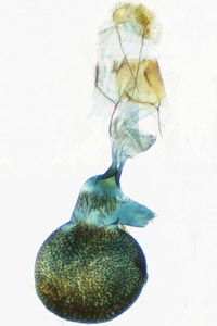 1: Genitalpräparat eines nicht abgebildeten ♀, Österreich, Niederösterreich, Dürnstein, 15. Mai 1990, leg. Helmut Rauchberger (det., Präparation & Mikro-Foto: Peter Buchner)
