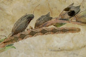 7: Schweiz, St. Gallen, Wattwil, Garten, 750 m, Raupe auf Odermennig (Agrimonia eupatoria) am 10. August 2011, verpuppt am 1. September 2011, e.l. 26. Mai 2012 (leg., cult. & Foto: Pia Rindlisbacher), det. Thomas FähnrichForum