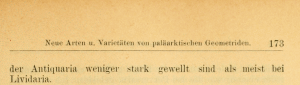 - Erstbeschreibung: Staudinger, O. (1892): Neue Arten und Varietäten von paläarktischen Geometriden aus meiner Sammlung. — Deutsche entomologische Zeitschrift Iris 5 (1): 141-260, pl. II.
