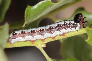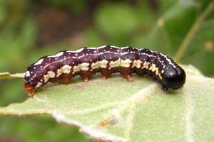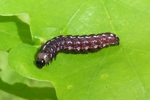 6: an einem parkartigen, lichten Laubbaumbestand auf Halbtrockenrasen war die Raupe, die kurz vor der letzten Häutung stand, an einer Eiche in Augenhöhe, Deutschland, Baden-Württemberg, Bad Bellingen, an Eiche, 220 m, 14. Mai 2013 (fot.: Florian Nantscheff)Forum