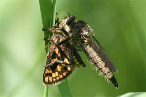 - [Poaceae:] Molinia arundinacea (Rohr-Pfeifengras) [wo vorhanden in Baden-Württemberg wichtigste Eiablagepflanze]