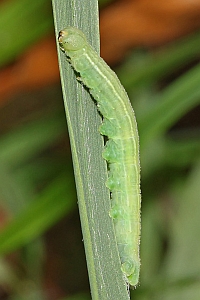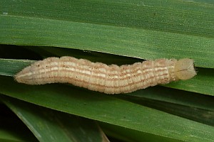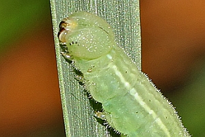 Wie schlecht der Kenntnisstand zu dieser Raupe bis in jüngste Zeit war, sieht man z.B. noch bei Forster & Wohlfahrt (1976), die behaupten, dass die Raupe klein überwintert und dass sie "an verschiedenen Grasarten, in erster Linie an Bromus" leben, oder bei Koch (1984), wo es zum "Futter der Raupe" heißt: "Spitz-Wegerich (Plantago lanceolata), Quecke (Agropyron repens) u.a.". Auch für die durch Clarke (2022) wieder ausgegrabene Blutrote Fingerhirse (Digitaria sanguinalis) gibt es keinerlei plausible Quelle - als sommerannueller Therophyt ist die Pflanze schon generell gar nicht mit der Larvalentwicklung der Raupe in Einklang zu bringen.