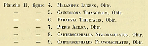 - Erstbeschreibung: Oberthür, C. (1886): Espèces nouvelles de lepidoptères du Thibet. — Études d'entomologie 11: [V]-XII, 13-38, pl. I-VII.