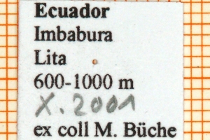 1: ♀, Ecuador, Orellana, above Loreto, Rio Bigal Biological Reserve, 900-1100 m, 28. Januar 2011 (fot.: Thierry Garcia, det. Bernard Hermier), Bilder über Kim Garwood erhalten