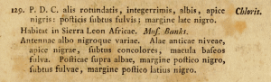 - Erstbeschreibung: Fabricius, J. C. (1775): Systema entomologiae, sistens insectorum classes, ordines, genera, species, adiectis synonymis, locis, descriptionibus, observationibus. 1-832. Flensburgi et Lipsiae (Officina Libraria Kortii).
