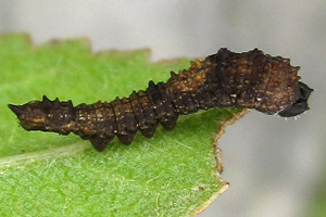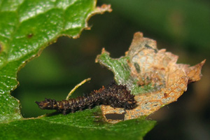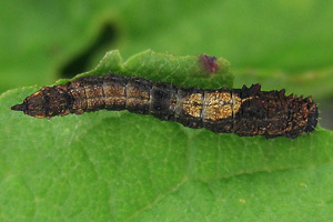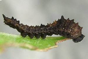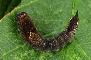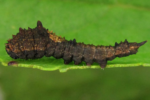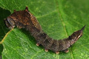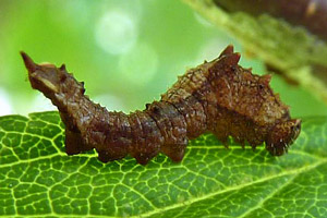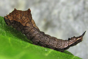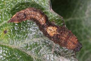 1: erwachsene Raupe, 14 mm lang, Österreich, Niederösterreich, 5 km N Schwarzau am Steinfeld, Lichtung in Schwarzföhrenforst, an Apfelbaum (Malus sp.) fressend, 22. Juni 2006 (Foto: Peter Buchner), det. Peter Buchner