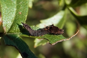 1-2: die Raupe hält sich typischerweise auf der Blattoberseite auf: Deutschland, Niedersachsen, Ortsrand Rodenberg, 70 m, Streuobstwiese in Gewässernähe, an Prunus spinosa (Schlehe), 16. August 2017 (det. & Freilandfotos: Tina Schulz)Forum