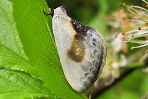 1-2: in Häutungsruhe, Deutschland, Schleswig-Holstein, Nordfriesland, Föhr, Reitweg im Wald westlich von Wyk, an Crataegus spec., 14. August 2006 (Freilandfotos: Jürgen Rodeland), det. Jürgen Rodeland