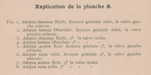 - Erstbeschreibung: Reverdin, J. L. (1916): Adopea nova, mihi, species nov. — Bulletin de la Société lépidoptérologique de Genève 3 (3): 122-128, pl. 7-8.