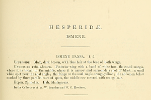Anlass zur Verwirrung kann die Bindung der fünf Bände der „Illustrations of New Species of Exotic Butterflies“ im Besitz der Smithsonian Libraries and Archives bieten, die in der Biodiversity Heritage Library (BHL) digitalisiert sind. Was dort als Vol. V bezeichnet ist, so auch auf dem Titelblatt, enthält die Tafel Ismene, die jedoch zu Vol. IV gehört. Zur Entwirrung beitragen können die Wrapper (Titelblätter der einzelnen Lieferungen), die in der BHL als „[suppl.=wrappers;indexes]“ zusammengefasst sind [Digitalisat auf biodiversitylibrary.org].