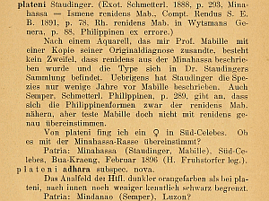 - Rhopalocampta plateni adhara Fruhstorfer, 1911 [Originalkombination]
