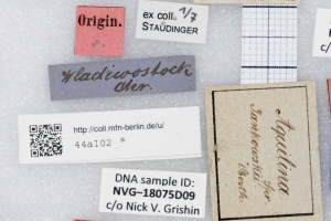 10-12: Holotypus ♂, Daten siehe Etiketten (fot.: Nick V. Grishin, Fotos bearbeitet: Michel Kettner), coll. Zoologisches Museum der Humboldt-Universität zu Berlin.
