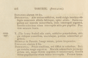 - Erstbeschreibung: Haworth, A. H. (1803-1828): Lepidoptera britannica; sistens digestionem novam insectorum lepidopterorum quæ in Magna Britannia reperiuntur, larvarum pabulo, temporeque pascendi; expansione alarum; mensibusque volandi; synonymis atque locis observationibusque variis: I-XXXVI, 1-609. Londini (R. Taylor).