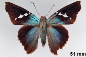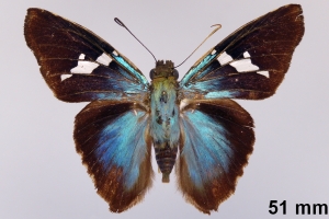 4-6: Typus? ♀ von Thymele fulviluna Mabille, 1888, Daten siehe Etiketten (fot.: Ernst Brockmann, Fotos bearbeitet: Michel Kettner), coll. Zoologisches Museum der Humboldt-Universität zu Berlin.
