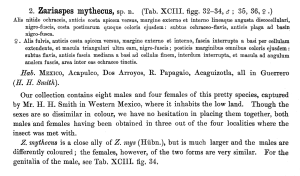 - Erstbeschreibung, Tafeln: Godman, F. D. & O. Salvin (1879-1901): Biologia Centrali-Americana. Insecta. Lepidoptera-Rhopalocera. Vol. III. (Plates.).: pl. 1-23, 24-24a, 25-112. [London (Taylor and Francis)]. — Digitalisat auf biodiversitylibrary.org: [pl. 93 figs. 32-36]