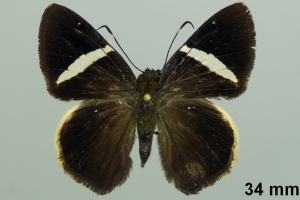 Cecropterus longipennis und Cecropterus zarex sind zuverlässig nur über das Genital bestimmbar. Cecropterus longipennis hat oft, aber nicht immer, einen mehr oder weniger deutlichen schwarzen Punkt in der Adergabelung innerhalb der weißen Binde des Vorderflügels. C. zarex hat dieses nicht. Tiere mit diesem schwarzen Punkt sind eindeutig, ohne diesen schwarzen Punkt anhand eines Fotos nicht bestimmbar. (Autor: Ernst Brockmann)