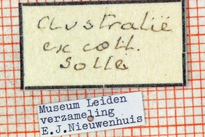 - Erstbeschreibung: Mac Leay, W. S. [1826]: Annulosa. Catalogue of Insects, collected by Captain King, R.N. — In: King, P. P. (“1827”) [1826]: Narrative of a survey of the intertropical and western coasts of Australia performed between the years 1818 and 1822 2: 438-469. London (John Murray).