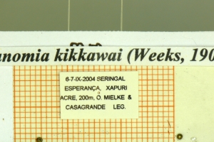 Locus typicus ist gemäß der Erstbeschreibung durch Weeks (1906) Suapure im Regenwald von Venezuela. Die Beschreibung erfolgte nach einem Männchen und 2 Weibchen, wobei zwar ein Exemplar abgebildet, aber nicht zum Holotypus erklärt wurde. Janzen et al. (2017: 8315) legten das abgebildete Männchen als Lectotypus fest. Da sich ihre beiden neuen Arten beim Barcoding und in den Genitalien nur wenig von U. kikkawai unterschieden - sehr deutlich aber in der Kern-DNA und den Nahrungspflanzen der Raupen - war es nötig, die Kern-DNA auch dieser sehr alten Exemplare von U. kikkawai zu untersuchen, damit man überhaupt wusste, welche der drei Arten denn jetzt mit dem Namen U. kikkawai verbunden blieb. Wenig überraschend gehörten die drei Exemplare von tief im Regenwald Venezuelas zur gleichen Art und zu dem, was auch in Costa Ricas Regenwald fliegt und als Raupe dort an Cespedesia spathulata (Ochnaceae) lebt.