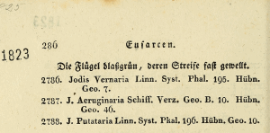 - Erstbeschreibung: Hübner, J. [1816-1826] („1816“): Verzeichniß bekannter Schmettlinge [sic]: 1-431, 1-72. Augsburg.