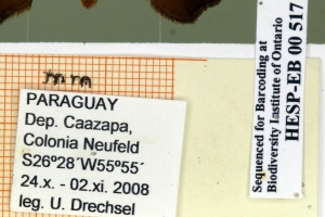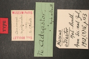 16-18: Holotypus ♀ von Nascus adrastor Mabille & Boullet, 1912, Daten siehe Etiketten (fot.: Bernard Hermier, Fotos bearbeitet: Michel Kettner), coll. Muséum national d'histoire naturelle. Paris.