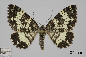 1: Vergleich von Rheumaptera hastata (oben, ♂) und R. subhastata (unten, ♂): Daten siehe Etikett (coll. & Foto: Egbert Friedrich)Forum