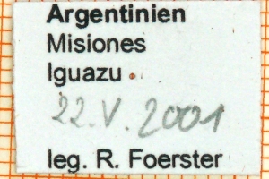 1-3: ♀, Daten siehe Etiketten (fot.: Ernst Brockmann, Fotos bearbeitet: Michel Kettner), coll. Departamento de Zoologia, Universidade Federal do Paraná, Curitiba, Paraná, Brazil.