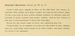 - Erstbeschreibung: Oberthür, C. (1886): Espèces nouvelles de lepidoptères du Thibet. — Études d'entomologie 11: [V]-XII, 13-38, pl. I-VII.