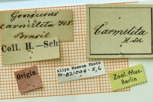 1-3: Syntypus ♂, Daten siehe Etiketten (fot.: Ernst Brockmann, Fotos bearbeitet: Michel Kettner), coll. Zoologisches Museum der Humboldt-Universität zu Berlin.