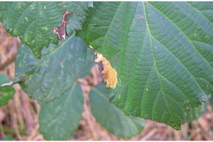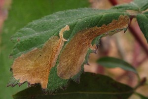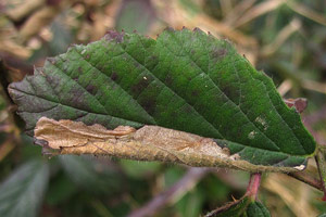 1-2: Mine an Brombeere (Rubus fruticosus agg.): Deutschland, Rheinland-Pfalz, Ober-Olmer Wald bei Mainz, 26. Dezember 2006 (Freilandfotos der Mine und Studiofoto der Raupe: Jürgen Rodeland), det. Rudolf BrynerForum
