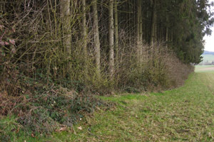 2: Minenfundort, Deutschland, Niedersachsen, Rodenberg, 133 m, nordexponierter Waldrand eines an Fichten reichen Waldstücks oberhalb der Windmühle, 4. März 2017 (Foto: Tina Schulz)