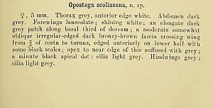 Unklare Position! Die Art passt nicht in die Gattung Opostega, wurde aber noch nicht mit einer anderen Gattung kombiniert.