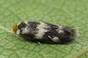 1: ♂, Deutschland, Thüringen, "Queste" bei Schmalkalden, Minen in den Früchten von Spitzahorn (Acer platanoides) am 12. Juni 2009 gefunden, Kokon etwa am 20. Juni 2009 angefertigt, e.l. 30. Juni 2009 (gen. det. & Foto: Uwe Büchner)Forum