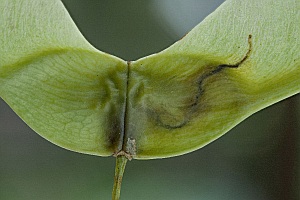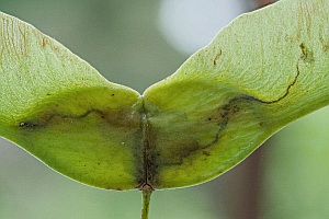 1-2: Mine in Frucht von Spitzahorn (Acer platanoides) im Durchlicht: Deutschland, Thüringen, "Queste" bei Schmalkalden, 12. Juni 2009 (leg., cult., det. & Fotos: Uwe BüchnerForum