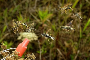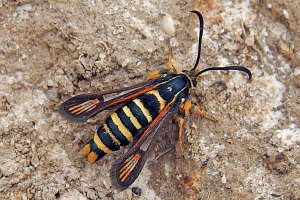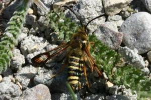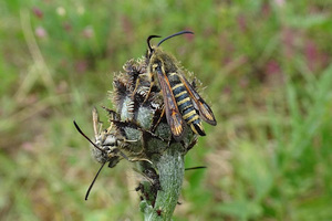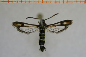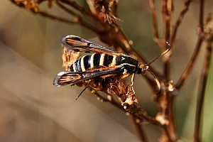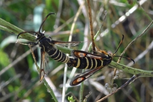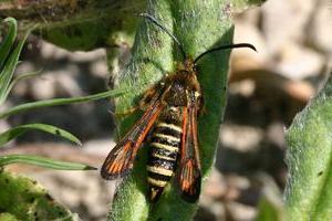 In jedem Fall lohnt es sich auch Pheromone zu benutzen. B. ichneumoniformis fliegt vor allem an das apiformis-Pheromon (Bild 3). Dazu muss dieses so angebracht werden, dass der Wind die Pheromone in das Biotop bläst. Die Falter fliegen stets gegen den Wind an und umkreisen die Pheromonlure in geringem Abstand. Natürlich werden durch die Pheromone nur die Männchen angelockt. (Text: RR)