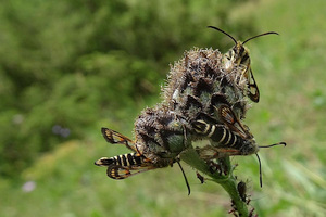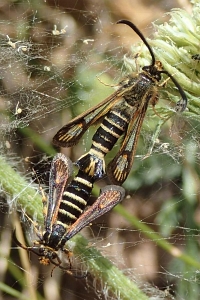 Weibchen: Etwas schwieriger ist es bei den Weibchen. Hier ist der Afterbüschel am hilfreichsten. Der ist bei ichneumoniformis in der Mitte schwarz, dann gelb und am Rand wieder Schwarz. Bei albanensis fehlt der mittlere schwarze Teil.
